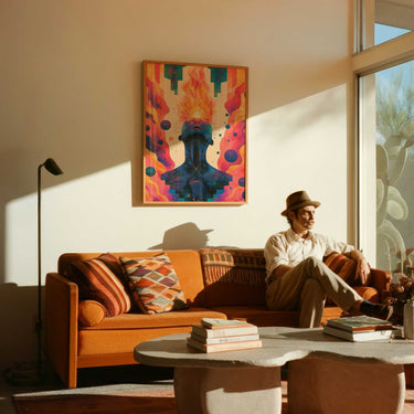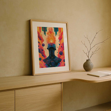 Unleash the power of pure imagination with this psychedelic abstract print, where flames erupt from the mind’s eye, radiating energy, passion, and transformation. A fusion of vivid colors, fluid motion, and surreal forms creates a hypnotic visual experience that symbolizes limitless creativity and boundless potential. Perfect for those who embrace bold, expressive, and thought-provoking art, this piece brings an electrifying presence to any space.