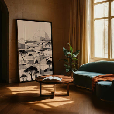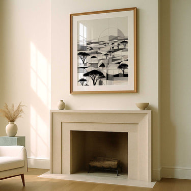 A study in form and flow, this artwork blends abstract geometry with expressive linework to create a sense of movement within stillness. The monochrome palette emphasizes shape and texture, inviting the eye to trace every curve and intersection.