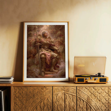 Rosa Parks, reimagined. Part of our Civil Rights Knights series, this print sees her as the quiet warrior she always was, adorned with a sword and armor. Exuding courage and stillness atop the throne she refused to give up.