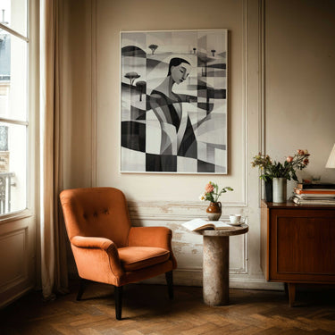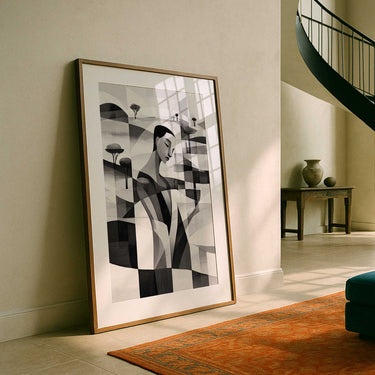 A study in form and flow, this artwork blends abstract geometry with expressive linework to create a sense of movement within stillness. The monochrome palette emphasizes shape and texture, inviting the eye to trace every curve and intersection.