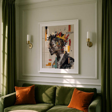 Rooted in Afrofuturism and cultural pride, this piece combines portraiture with bold abstraction to create a vision that feels at once grounded and otherworldly. Shapes, symbols, and color collide to reimagine identity as power, both timeless and forward-looking.