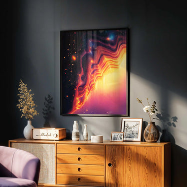 Step into the vast expanse of the cosmos with this breathtaking space-inspired piece of art, where deep black and purple hues swirl with fiery reds and oranges, evoking the endless beauty of the galaxy. This celestial composition captures the mystery, wonder, and limitless possibility of the night sky, making it perfect for dreamers, stargazers, and those drawn to the unknown. A striking fusion of cosmic energy and vibrant color, this artwork ignites a sense of exploration and excitement, bringing the universe to your walls.