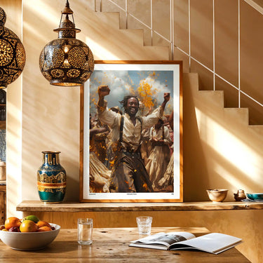 Freedom rang, but not all at once. Galveston, 1865. The news came late, but the joy was immediate. This print captures the moment freedom was spoken aloud to those who had long known they deserved it. There was music. There were tears. There was dancing in the dust. A celebration born from struggle. A beginning, not an end.