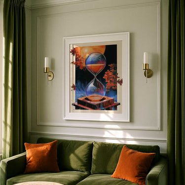 This surreal hourglass artwork features an inspiring quote: "There's only one thing more precious than time, and that's who you spend it on." The unique design blends elements of time and meaningful reflection, creating a thought-provoking and visually captivating piece. A perfect reminder to cherish relationships and moments, this art print adds depth and meaning to any space with its blend of surrealism and timeless wisdom.