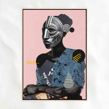 A fusion of heritage and modern design, this piece layers bold geometry with cultural motifs to create something both timeless and forward-looking. Textures, patterns, and striking contrasts come together to form a portrait that feels as much about identity as it is about art.