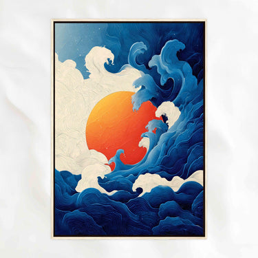 The seamless blend of orange, white, and blue gives this piece of art a natural sense of movement, balancing energy and tranquility in perfect harmony. The fluid transitions mimic the rhythmic dance of nature’s elements, evoking the effortless flow of wind, water, and light.