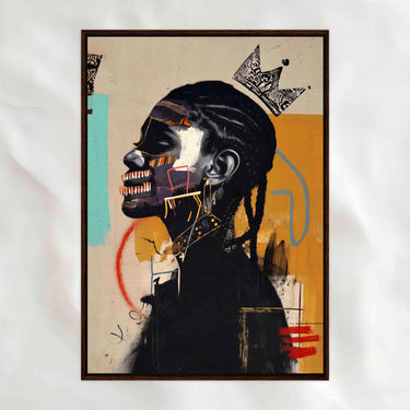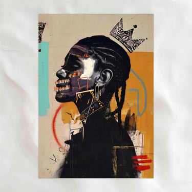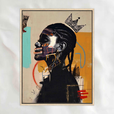 Rooted in Afrofuturism and cultural pride, this piece combines portraiture with bold abstraction to create a vision that feels at once grounded and otherworldly. Shapes, symbols, and color collide to reimagine identity as power, both timeless and forward-looking.