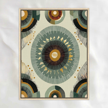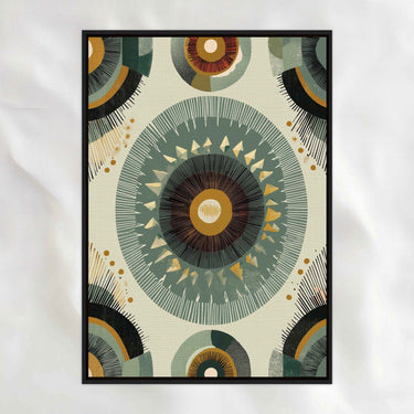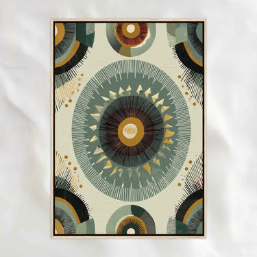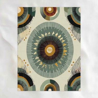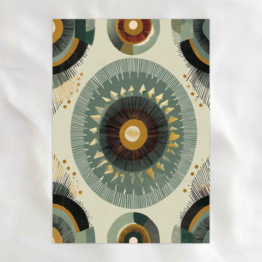 African-inspired and carefully balanced, this piece centers on repetition and symmetry to create a calm, steady rhythm. Layered circular forms and muted, earthy tones give it depth without heaviness. The overall feel is grounded and meditative, bringing a sense of order and quiet confidence to your space.